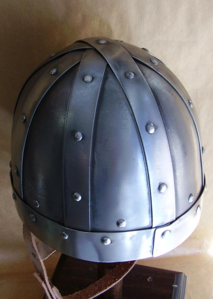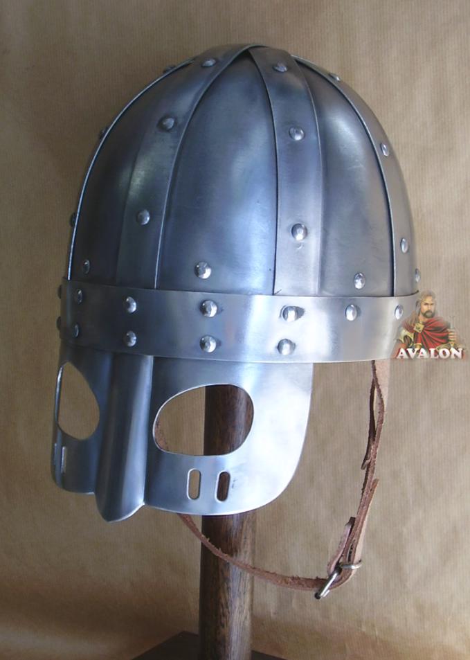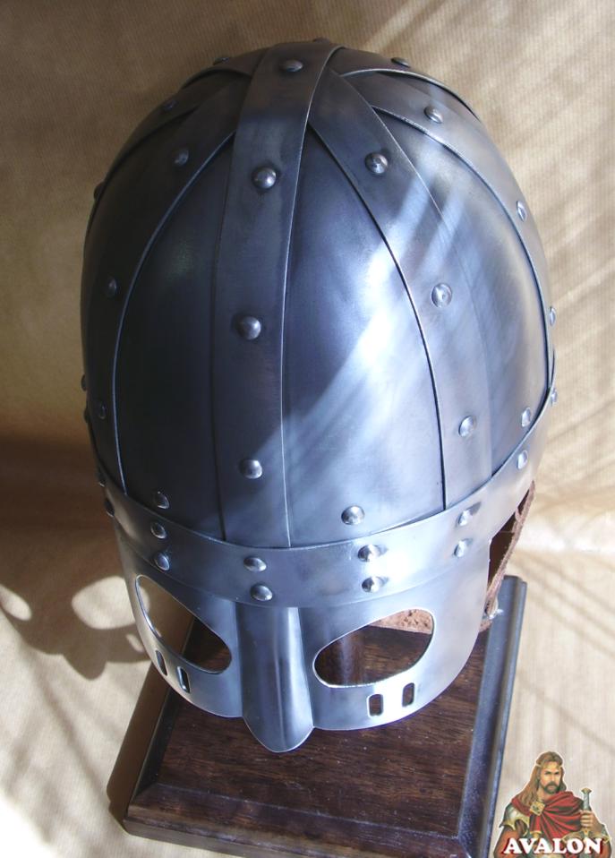 Elmo vichingo Spangenhelm è un elmo di origine nordica con maschera oculare e calotta semisferica, spessore e dimensioni personalizzabili pronto per l'uso.