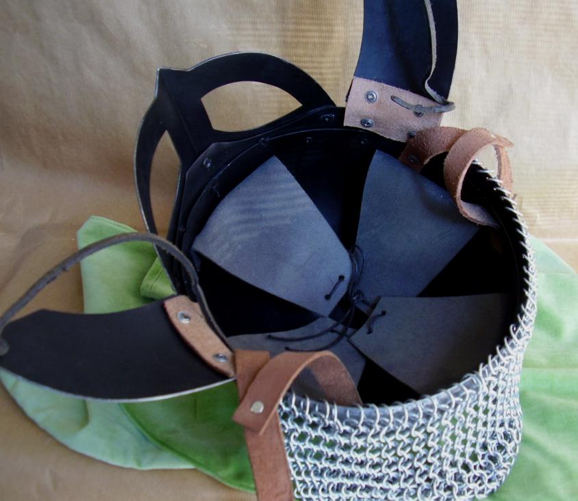 L'interno dell'elmo presenta una cuffia in cuoio regolabile per essere indossato, l'elmo ha una sottogola in cuoio e fibbia in ottone.