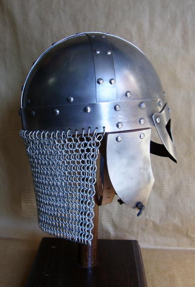 Elmo vichingo completo per il combattimento sviluppato sul modello di elmo rinvenuto a Gjermundbu, una fattoria di Ringerike, in Norvegia centrale, presso Haugsbygda, un villaggio del nord-est di Hønefoss, nel Buskerud.