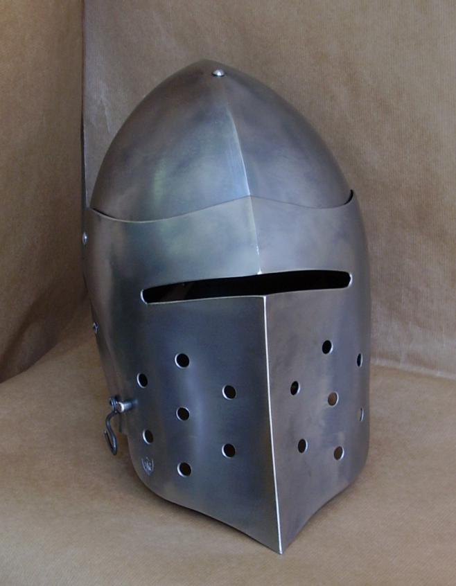 Elmi Medievali produzione e vendita, tutte le tipologie di elmi medievali: Elmo Cervelliera, Spangenhelm, elmo conico normanno, Elmo Bacinetto, Elmo Barbuta, Elmi da Combattimento, Grande Elmo Templare, Elmo da cavaliere, elmo celata alla veneziana, cappello di ferro.