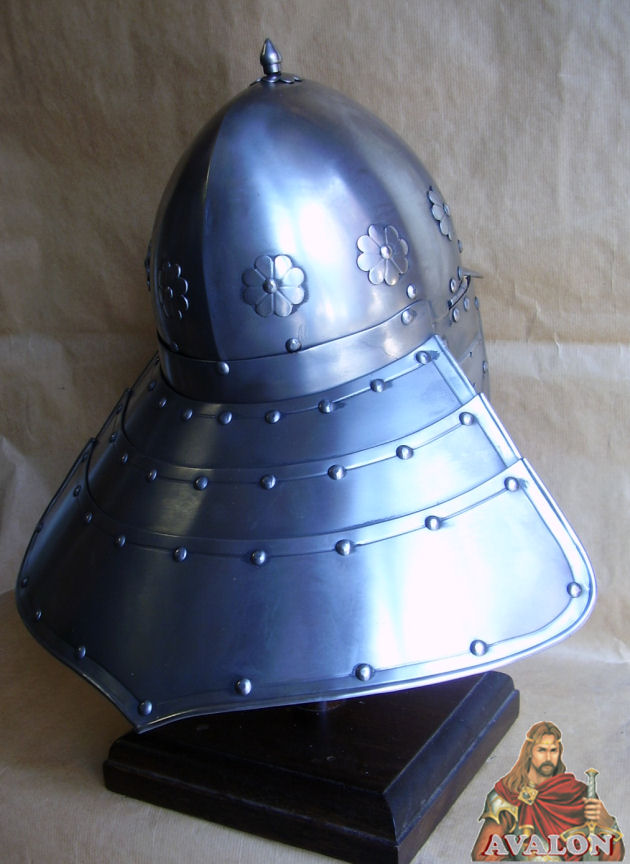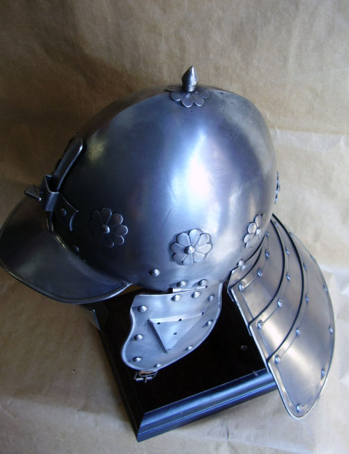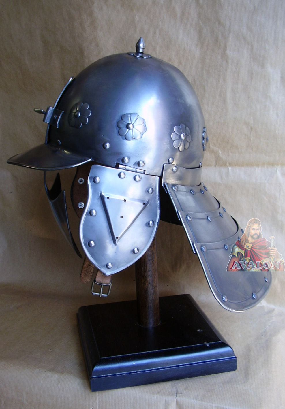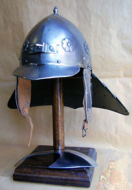 Elmo Cappellina in lingua inglese, derivato dal vocabolo che in lingua francese indica il cappello. L'evoluzione dell'elmo Cappellina cominciata con lo zischagge, ancora in uso a fine Seicento tra i polacco-lituani e tra i cavalieri del Brandeburgo-Prussia, proseguì in Europa occidentale con la definitiva codifica del modello "Cappellina". Parallelamente, le altre tipologie di elmetto in uso ai cavalieri tedeschi, inglesi, francesi ecc., quali la Borgognotta, il Morione e la Bigoncia, Questa riproduzione di elmo Cappellina è indossabile, personalizzabile in dimensioni e spessore: (1 mm - 2 mm). Elmo è l'ideale per il combattimento, ma anche per spettacoli di rievocazione medievali. L'interno dell'elmo presenta una cuffia in cuoio regolabile per essere indossato, l'elmo ha una sottogola in cuoio e fibbia in ottone. Dettagli: - Materiale: Acciaio al carbonio.