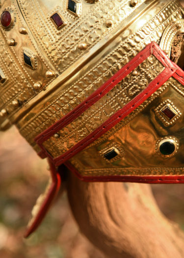 Il nostro elmo presenta un inserto in pelle rossa cucita e gli ornamenti sono in vetro. L'elmo è imbottito sia sui paraguance che sul paranuca.