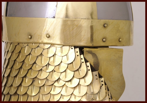 Elmo da arciere romano con paraguance e paranuca a scaglie tipico degli arcieri orientali inquadrati nelle coorti ausiliarie romane.