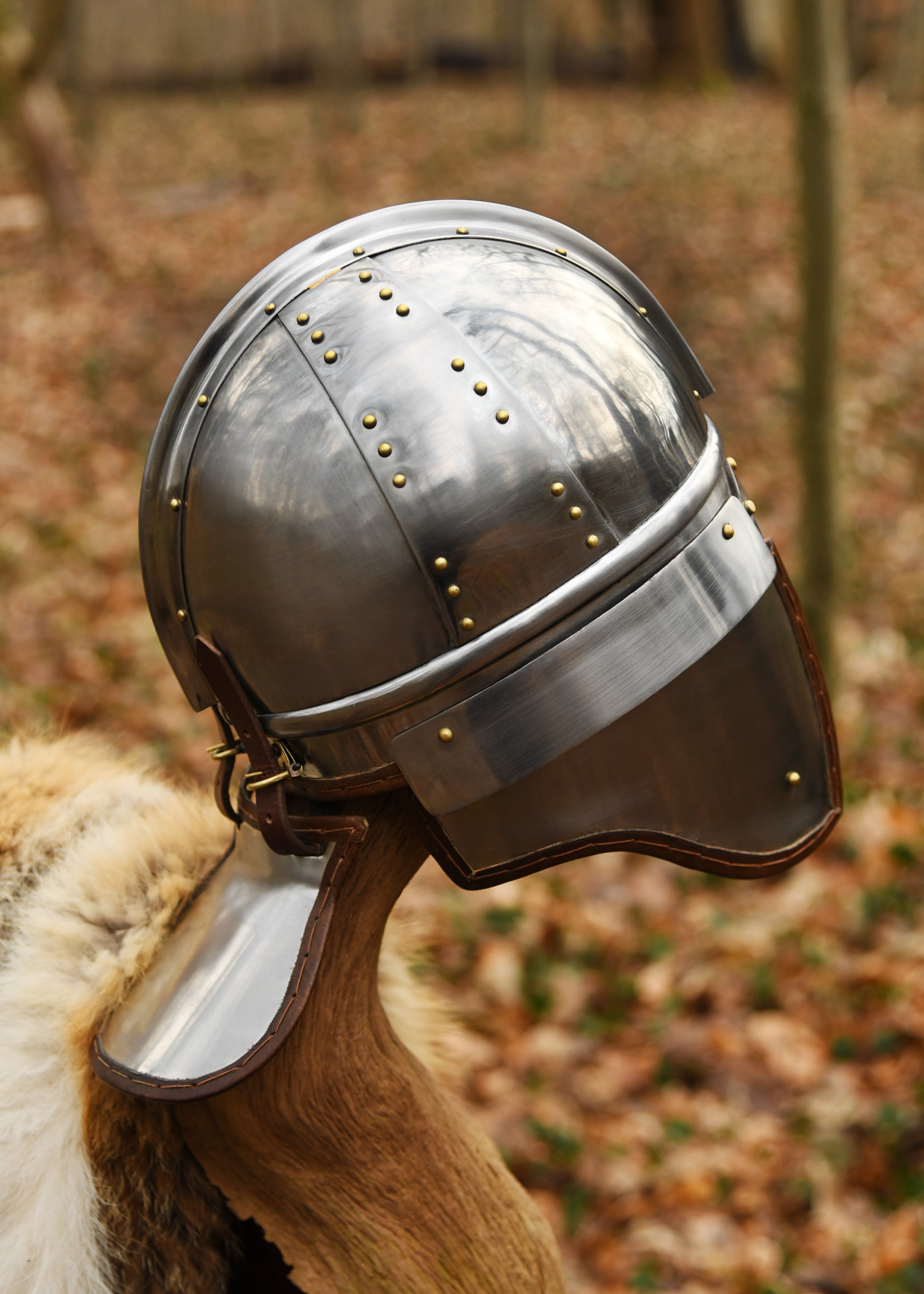Questa replica molto autentica si basa su un ritrovamento a Burgh Castle, Norfolk (Inghilterra).Dettagli: - Materiale: acciaio - Adatto per una circonferenza della testa fino a circa 63 cm.