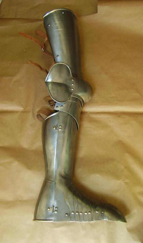 Parte di armatura a protezione della gamba, cosciale, ginocchietto con aletta, schiniere e scarpa, il tutto articolate,