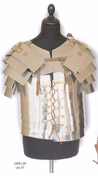 Lorica Segmentata sviluppata a partire dal primo secolo A.D. e indossata dai legionari in sostituzione della cotta di maglia o lorica hamata.