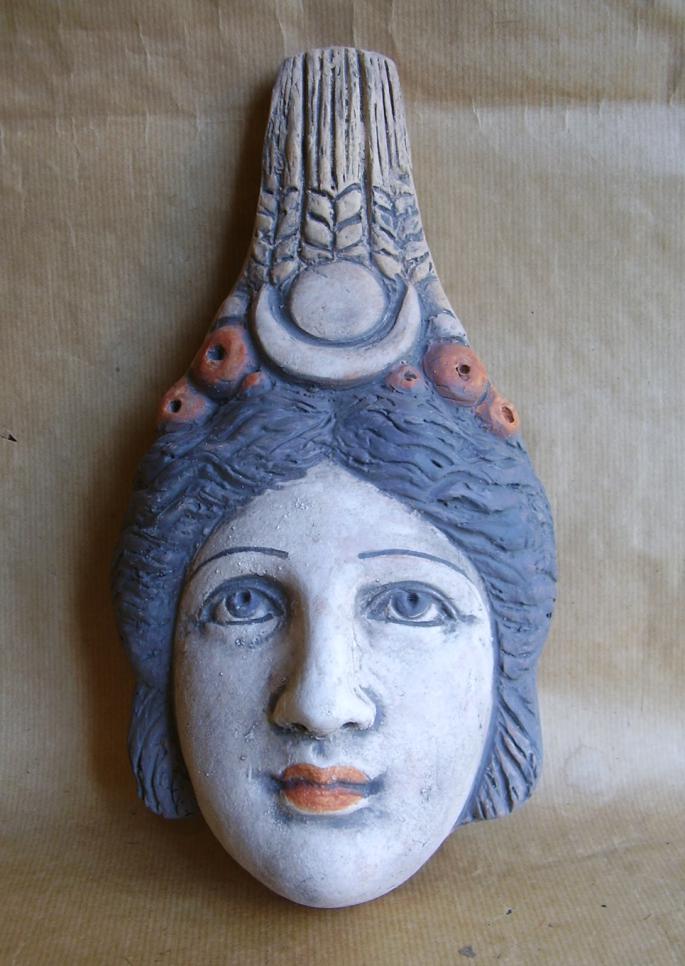 Maschera greca raffigurante Deidamia sposa di Achille figura, della mitologia greca, sec.IV a.C., scultura in terracotta.