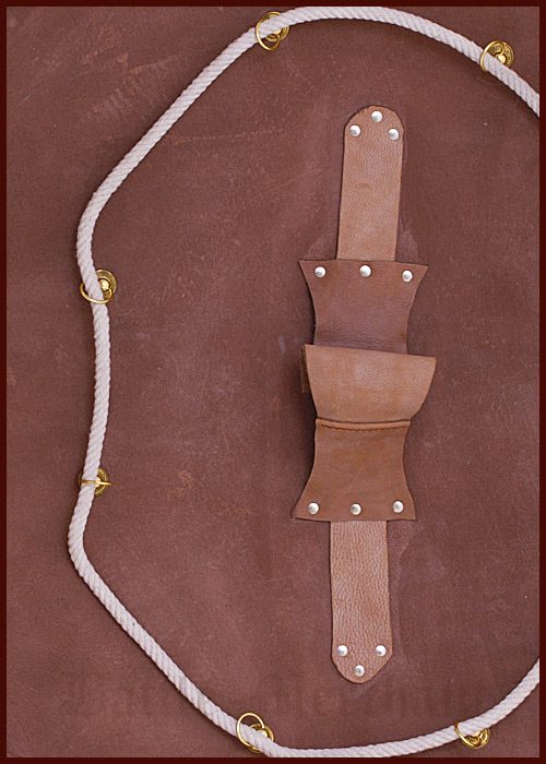 Scudo sparta in legno dipinto (oplon) fornito di un passante centrale in cuoio e di un'impugnatura formata da una corda lungo il bordo (antilab?). Le caratteristiche costruttive di questo tipo di scudo, consentiva una tenuta molto salda in posizione di difesa contro gli assalitori, con l'innovazione nella dimensione dello scudo, il diametro di 97 cm era sufficiente a proteggere le parti del corpo più vulnerabili ed a formare con gli scudi di altri combattenti la Falange. Dettagli: - Materiale: legno con copertina in lino dipinto. - Diametro:: ca. 97 cm. - Impugnatura: ca. 11 cm. - Spessore: 11mm. - Peso: 6 kg. Peso di spedizione: 8,50 kg