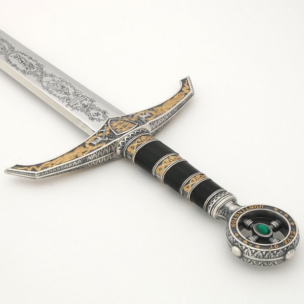 La leggenda lo fa risalire ai tempi del regno di re Riccardo Cuor di Leone. Questo popolare eroe, fuorilegge, viveva nella foresta di Sherwood con la sua banda di seguaci. Famoso come benefattore dei poveri e degli oppressi contro i potenti. La lama è in acciaio a doppio fili a sezione esagona, il fornimento è in metallo fuso con dettagli decorativi placcati in oro; il pomo è a ruota crociata all'interno. L'impugnatura è in pelle nera alternata ad anelli in metallo fuso decorato placcato in oro. Dettagli: Lunghezza totale: 123 cm Larghezza: 26 cm