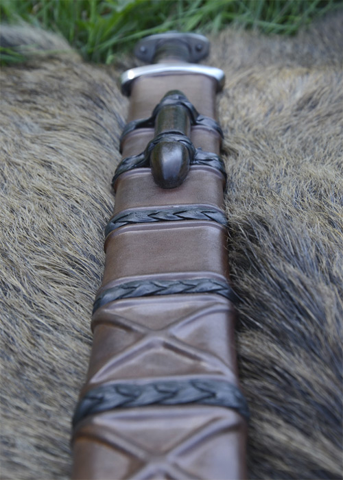 Questa spada è realizzata esclusivamente a mano. La guardia e il caratteristico pomolo con cinque rigonfiamenti sono realizzati in ghisa trattata termicamente. La lama è rivettata a mano sul pomello. Lama in acciaio armonico temperata ad olio a ca. 48 ° Rockwell, offre sia grande flessibilità e un minor peso. I bordi della lama sono smussati e la punta è arrotondata per sicurezza.