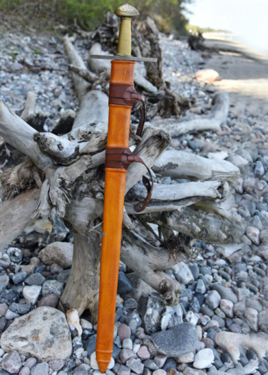 Spada di San Maurizio(Vienna), spada imperiale con fodero, XII secolo. Questa bellissima spada medievale è una replica della spada imperiale del Sacro Romano Impero. Poiché viene ricondotta a Saint Mauritius, è conosciuta anche come la spada di Mauritius. Questa spada è uno dei componenti delle insegne imperiali degli imperatori e dei re romano-tedeschi e fu donata dal Papa al nuovo imperatore durante le cerimonie di incoronazione come segno di potere secolare. L'originale è ora esposta nel Tesoro Secolare dell'Hofburg di Vienna. La ricostruzione qui proposta presenta una lunga lama a doppio taglio che si stringe leggermente verso la punta e presenta un solco lungo circa due terzi della sua lunghezza. La lama non è affilata. L'impugnatura a forma di croce termina con un pomo in noce brasiliana in ottone, che è ornata da uno stemma con l'aquila imperiale da un lato e dallo stemma dell'imperatore Ottone IV dall'altro (scudo diviso con tre leoni e un aquila dimezzata). L'iscrizione presente lungo il pomello recita: “BENEDETTO TV . Fai(minv)S . DE(v)S . QVI. DOCET. MANV(s)+” ("Benedetto [sia il mio] Signore [e] Dio, che insegna alle [mie] mani [a combattere]".
