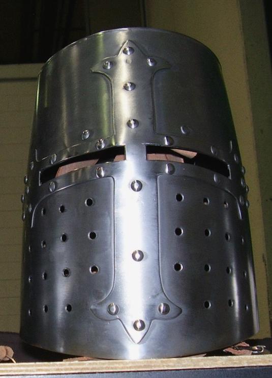Elmo Templare chiamato anche Grande Elmo, in uso durante le crociate nel XII° secolo. Questi elmi venivano indossati sopra un camaglio ...