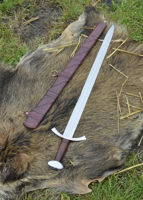 Spada Medievale da combattimento, Spada da pratica senza filo, categoria: SK-B.Riproduzione di una Spada medievale originale del in acciaio, periodo 1200-1250, la spada viene fornito con un fodero in legno rivestito in pelle.